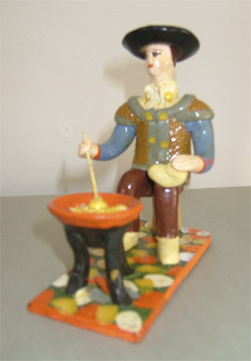 Pastor sentado a comer migas de um tarro (11 x 4,5 cm).