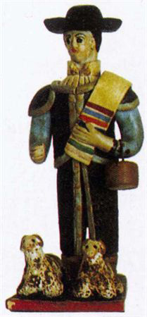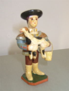 - Pastor ofertante de manta, ajoelhado, a rezar com o chapéu à frente.