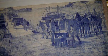em Lisboa. PAINEL DE AZULEJOS COM CENAS MILITARES (1918) do pintor, ceramista,